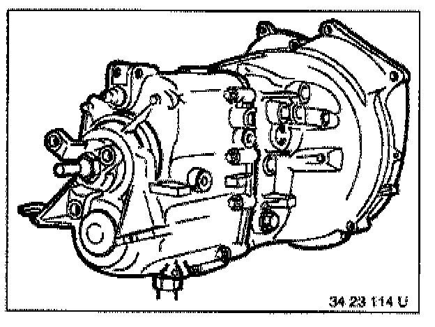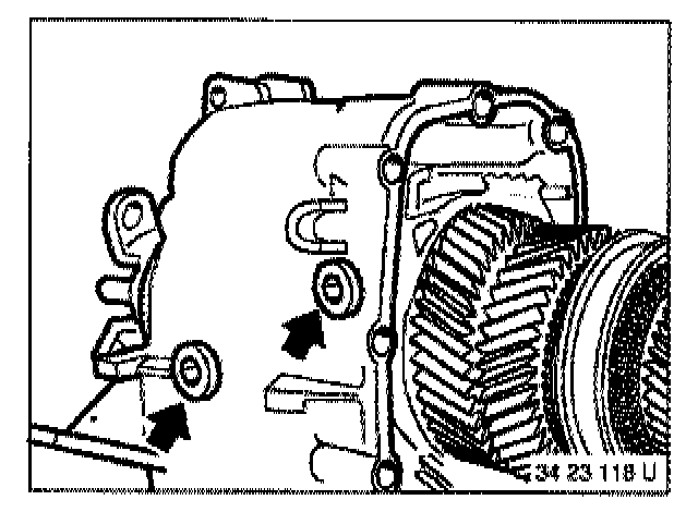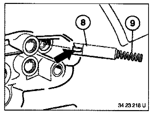 This requires turning the transmission until bore (4) in the locking lever is aligned with the bore in the case.
