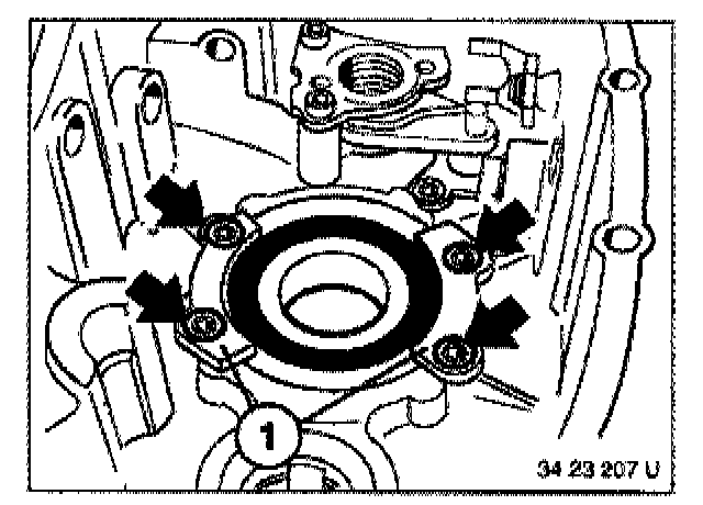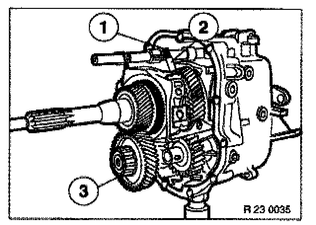 Drive in radial sealing ring (3) for the output flange with Special Tool 23 2 300.