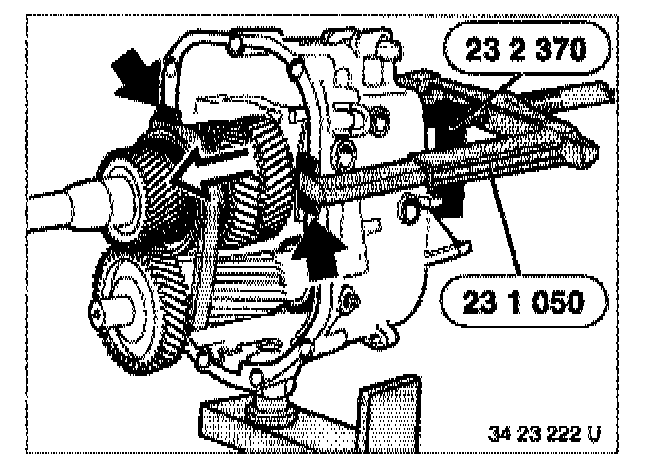 Attach Special Tool 23 1 050 to housing sealing surface and center of Special Tool 23 2 370.