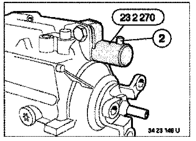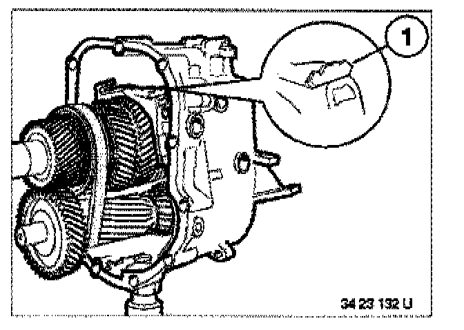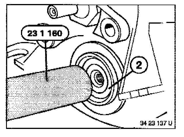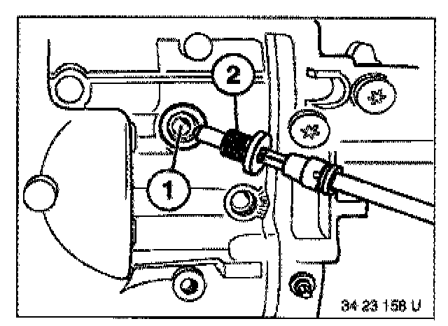 Install sealing cap (1) in bore (2) with Special Tool 23 2 350 and push in as far as possible.