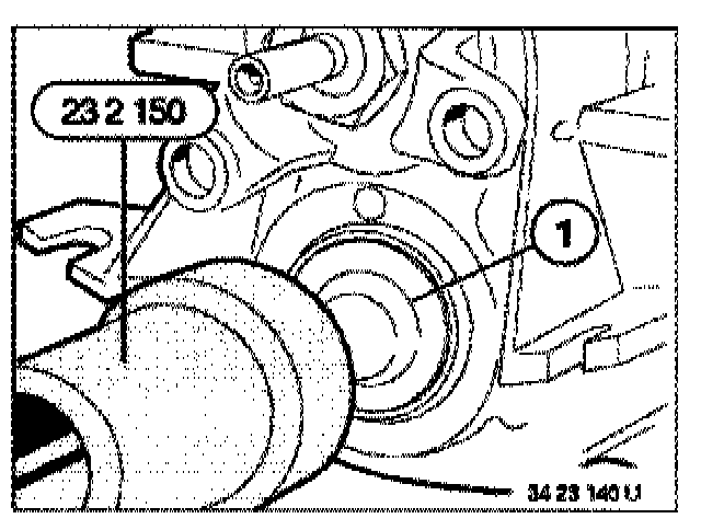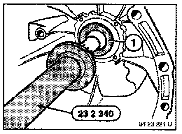 Drive radial sealing ring (1) in flush using Special Tool 23 2 340.