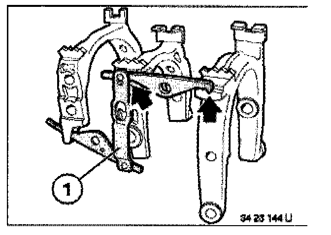 Swing the locking lever (1) inwards and, at the same time, couple it into the recesses of 1st/2nd and 3rd/4th gear shift arms.