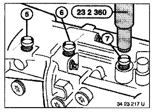 Knock in sealing caps (5 - 7) with Special Tool 23 2 360.