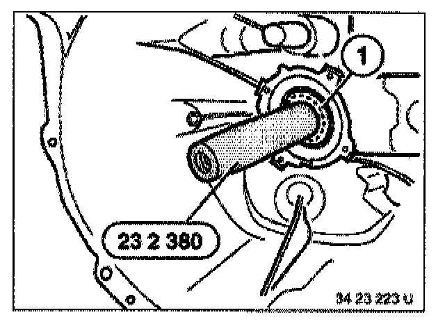 Drive in radial sealing ring (1) for the shift shaft with Special Tool 23 2 260.