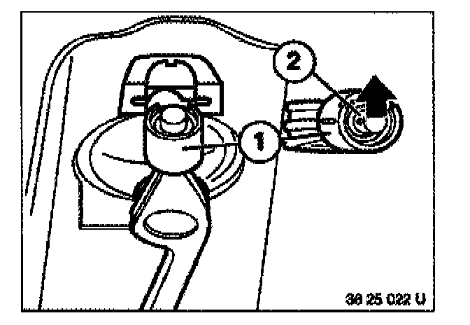 Lift spring (1) off tab (2) on case using a screwdriver and swing upwards.