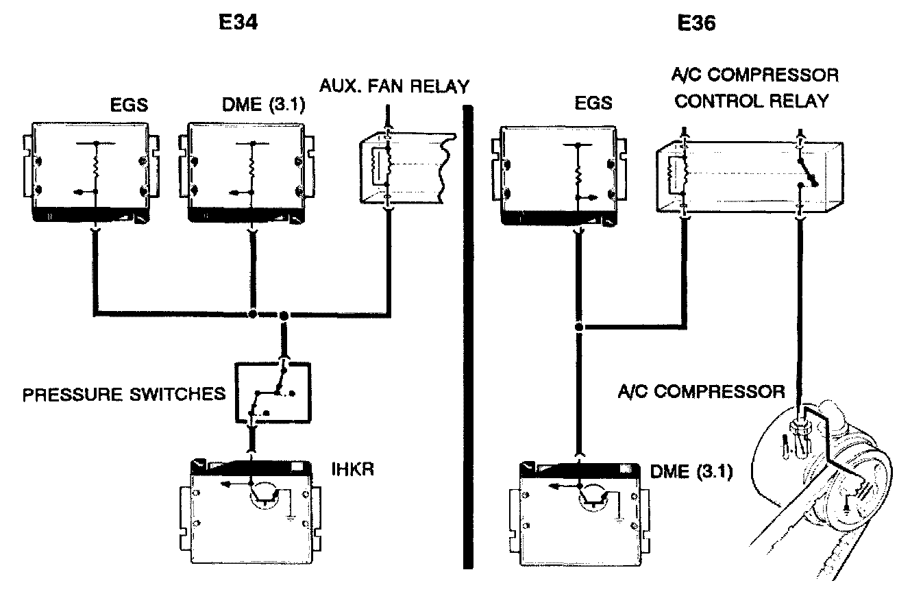 The A/C compressor "On" input is provided by a connection to the circuit that is used for the activation of the compressor clutch. This input signal allows the TCM to modify the shift characteristics to compensate for the compressor load.