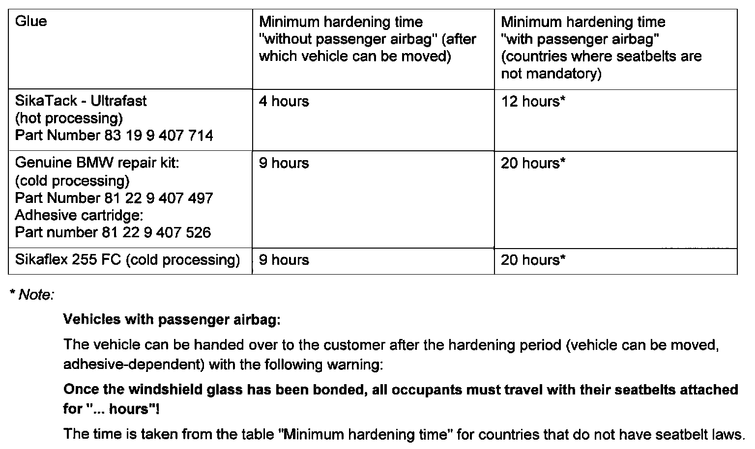 For gluing work, only use BMW-approved 1-component polyurethane adhesives.