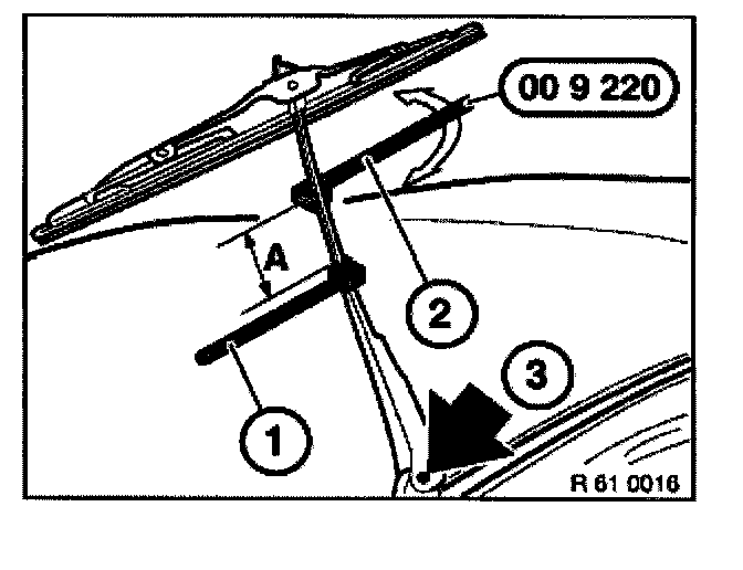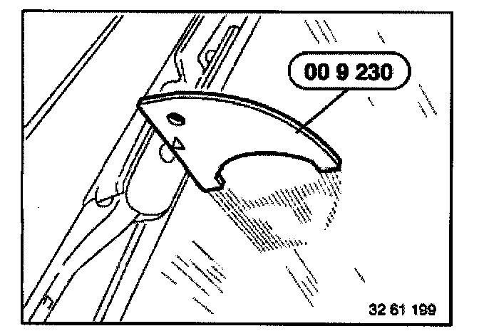 Fit special tool 00 9 230 beside fulcrum of wiper blade on windscreen.