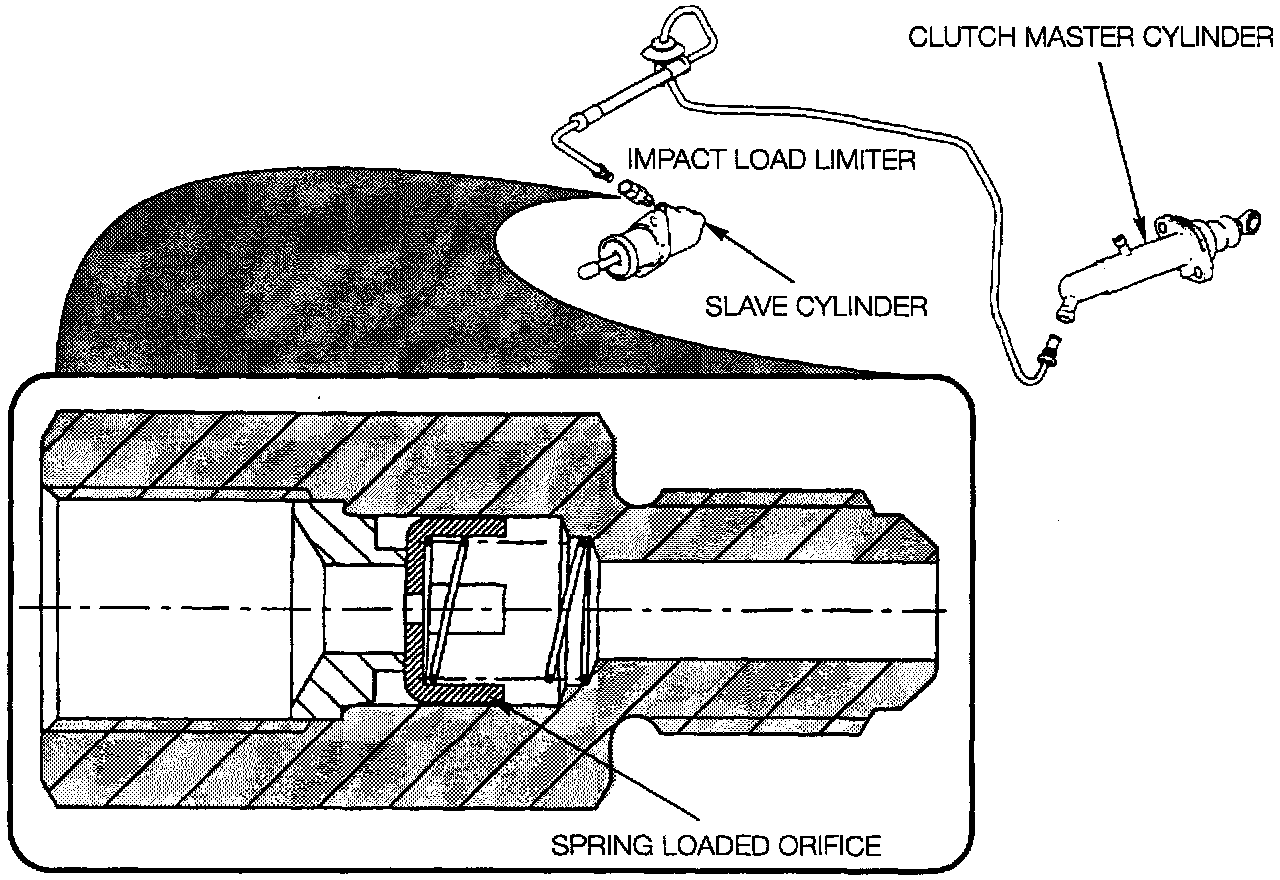 The use of the smaller differential is possible due to the installation of the load limiter in the clutch circuit. The limiter reduces the peak torque applied to the drive train through a restrictor. The restrictor is installed between the clutch master and slave cylinders. It provides a short delay in clutch engagement, however the effect is not noticed by the driver.