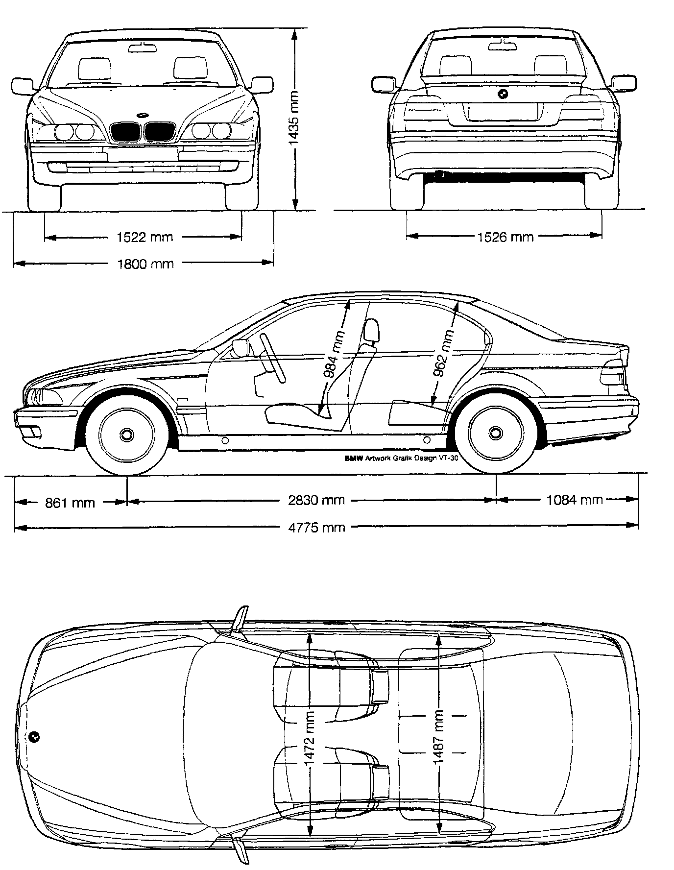 The aerodynamically designed body and features of the E39 give it the following drag coefficients:
