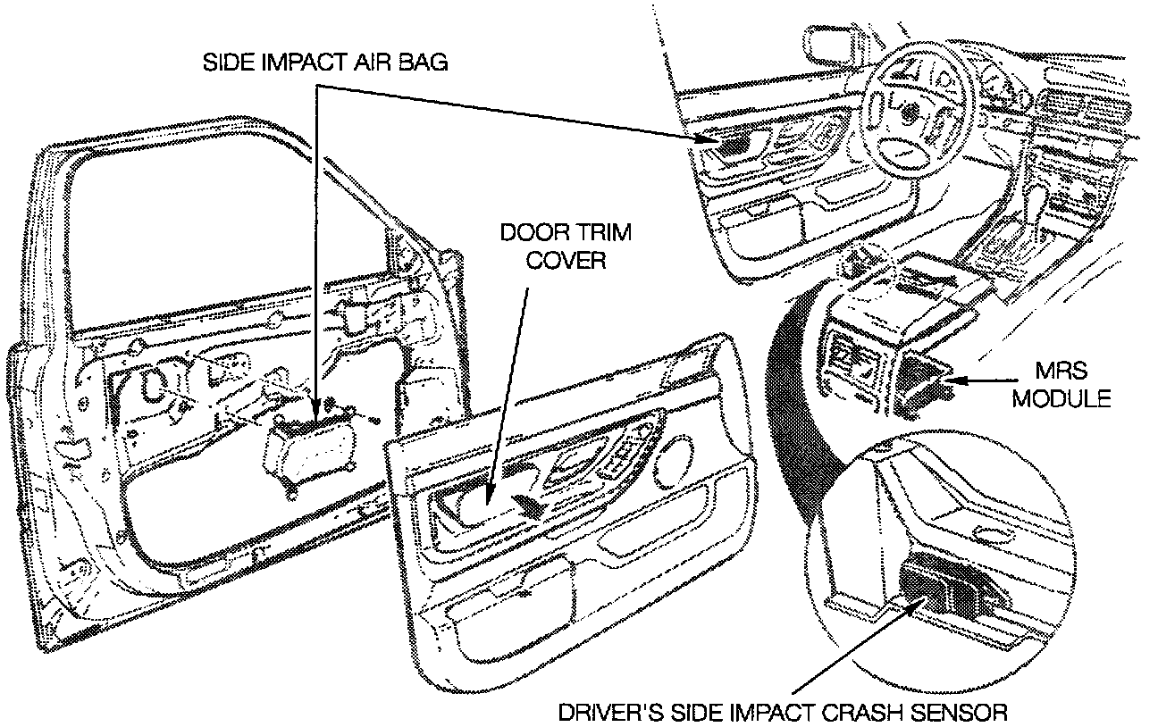 - DRIVER'S SIDE IMPACT AIRBAG ASSEMBLY - Mounted behind left front door panel trim cover. Same design as other airbag assemblies