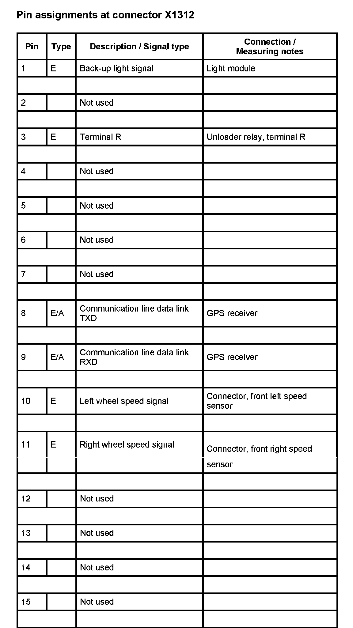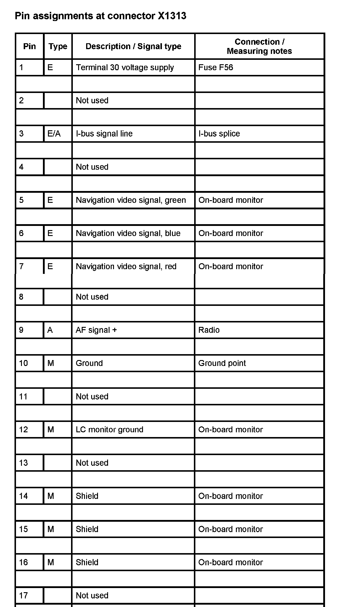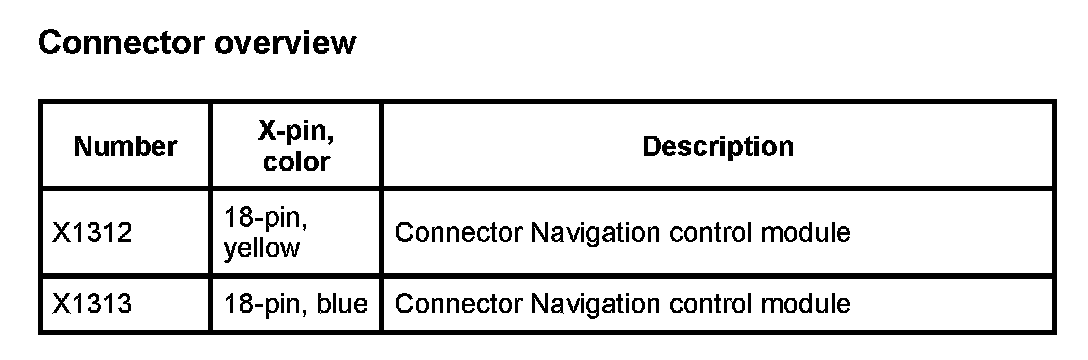 A112 Navigation Control Module (As of 1998_09 Up to 2000_09) (Pin Assignments)