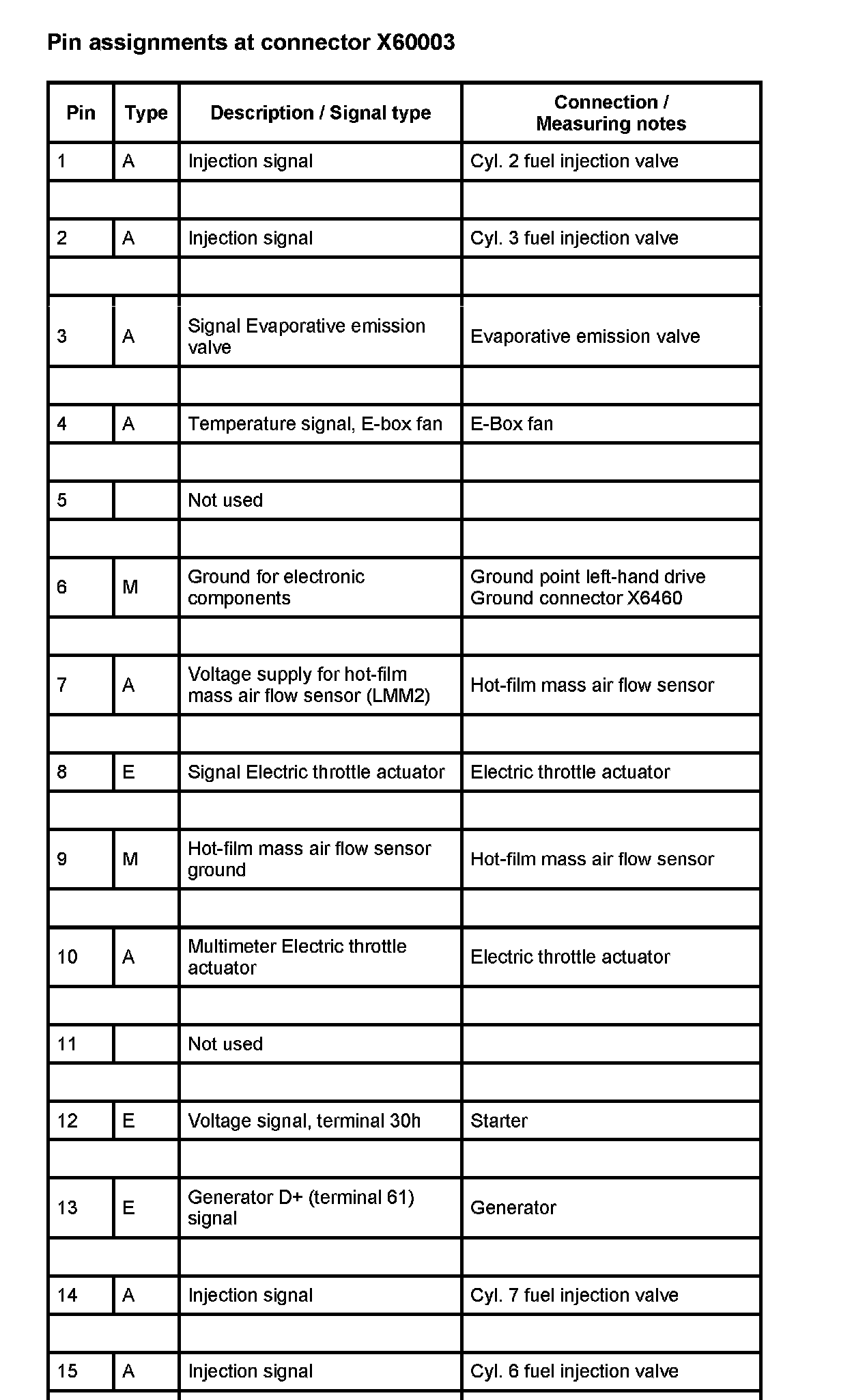 A6000 Engine Control Module (DME) (As of 2001_09) (Pin Assignments)