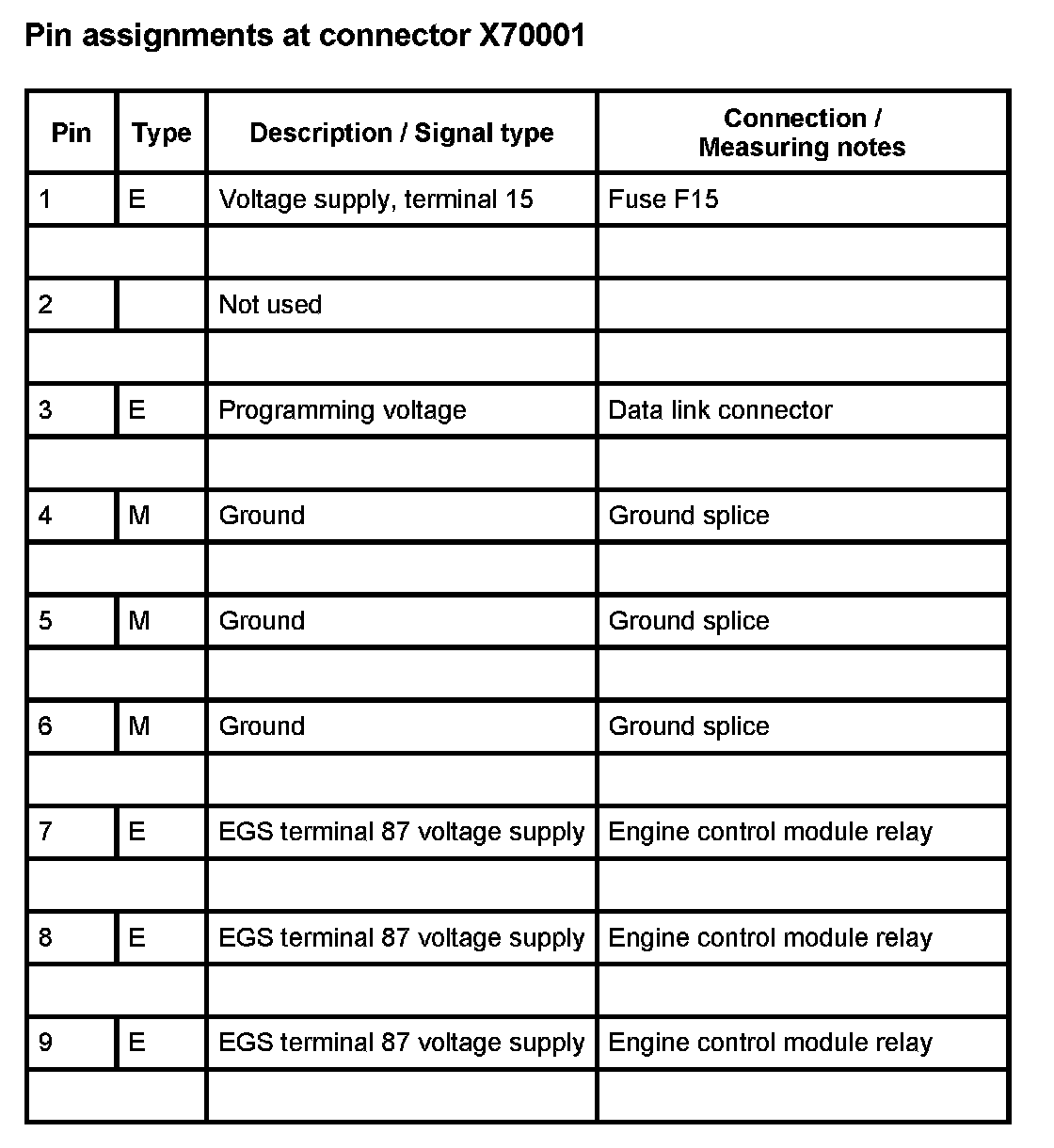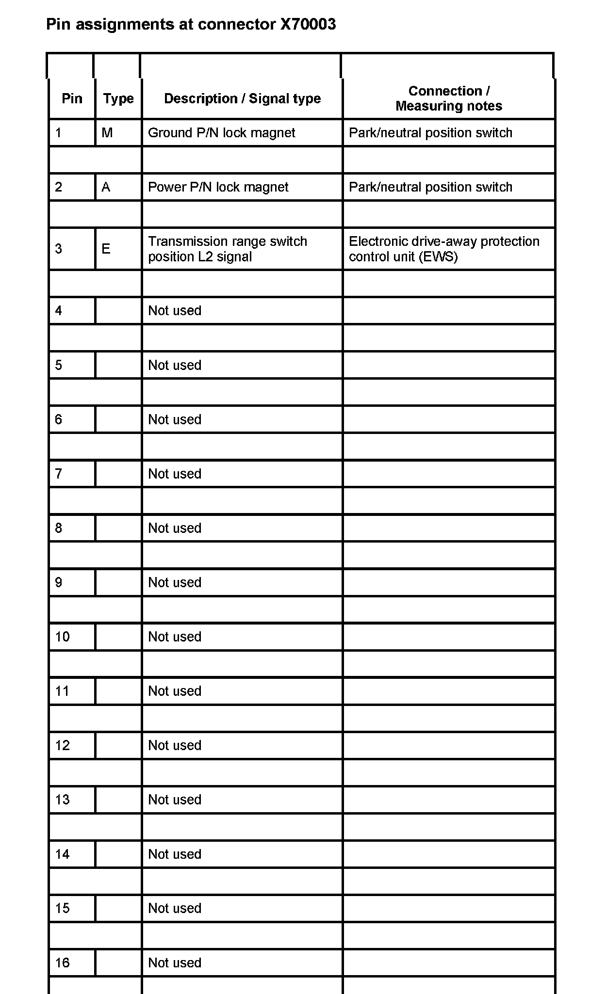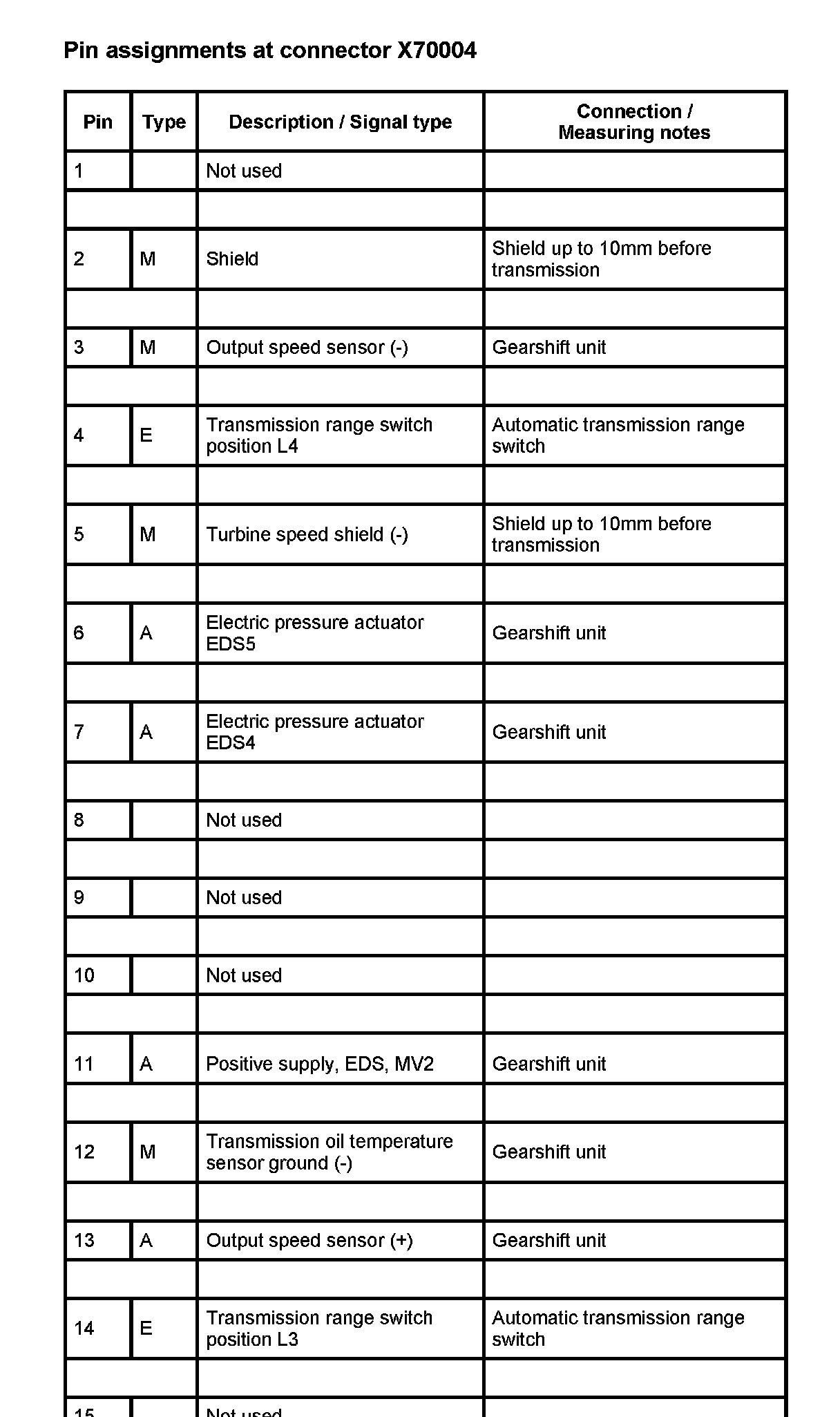 A7000 AGS Trans. CTRL. Module (As of 1998_09 Up to 1999_09 W/ DME MS42) (Pin Assignments)