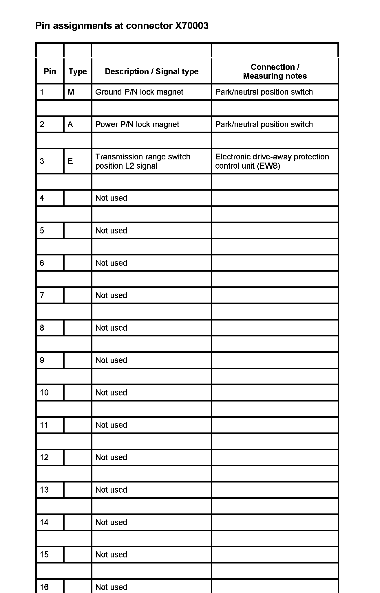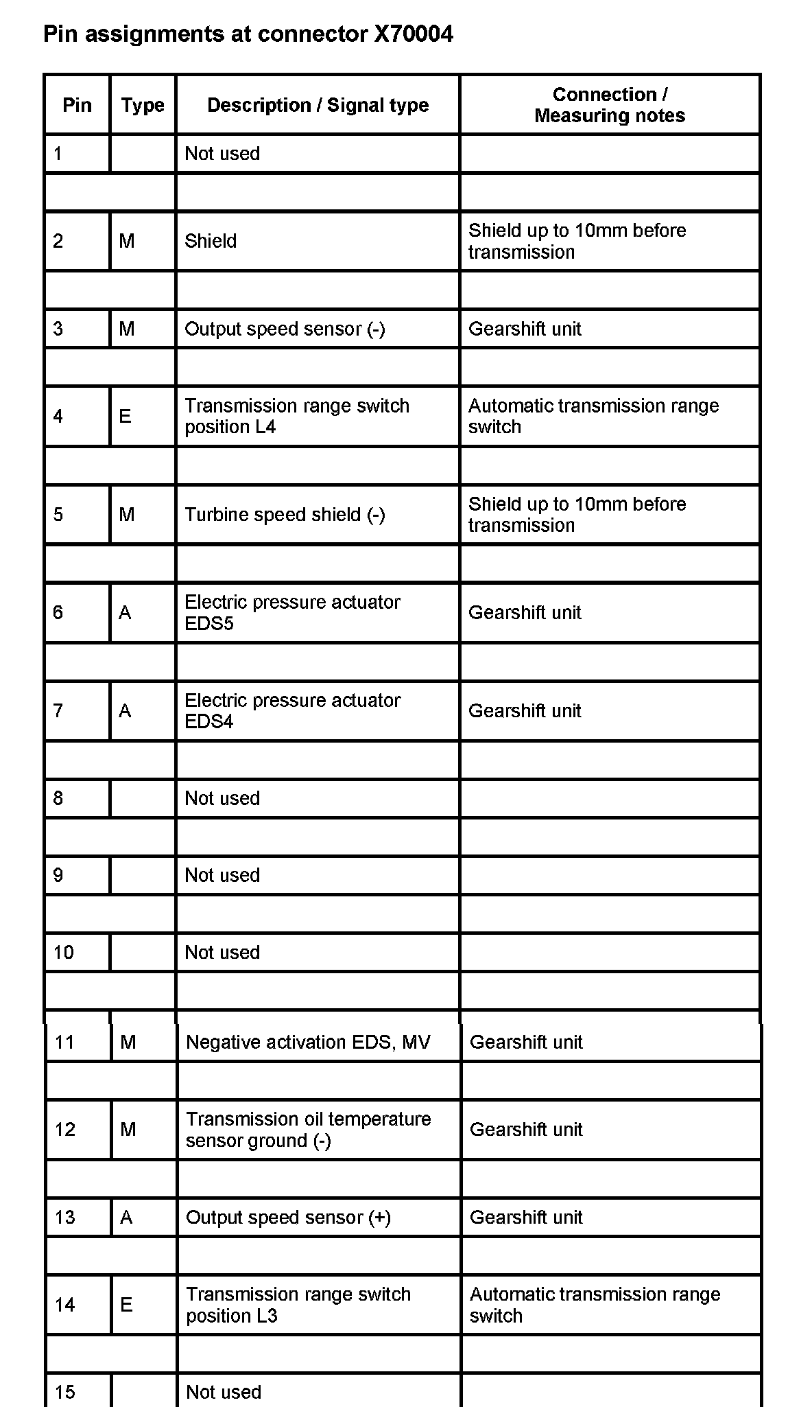 A7000 AGS Trans. CTRL. Module (DME ME7.2 W/ A/T) (Pin Assignments)