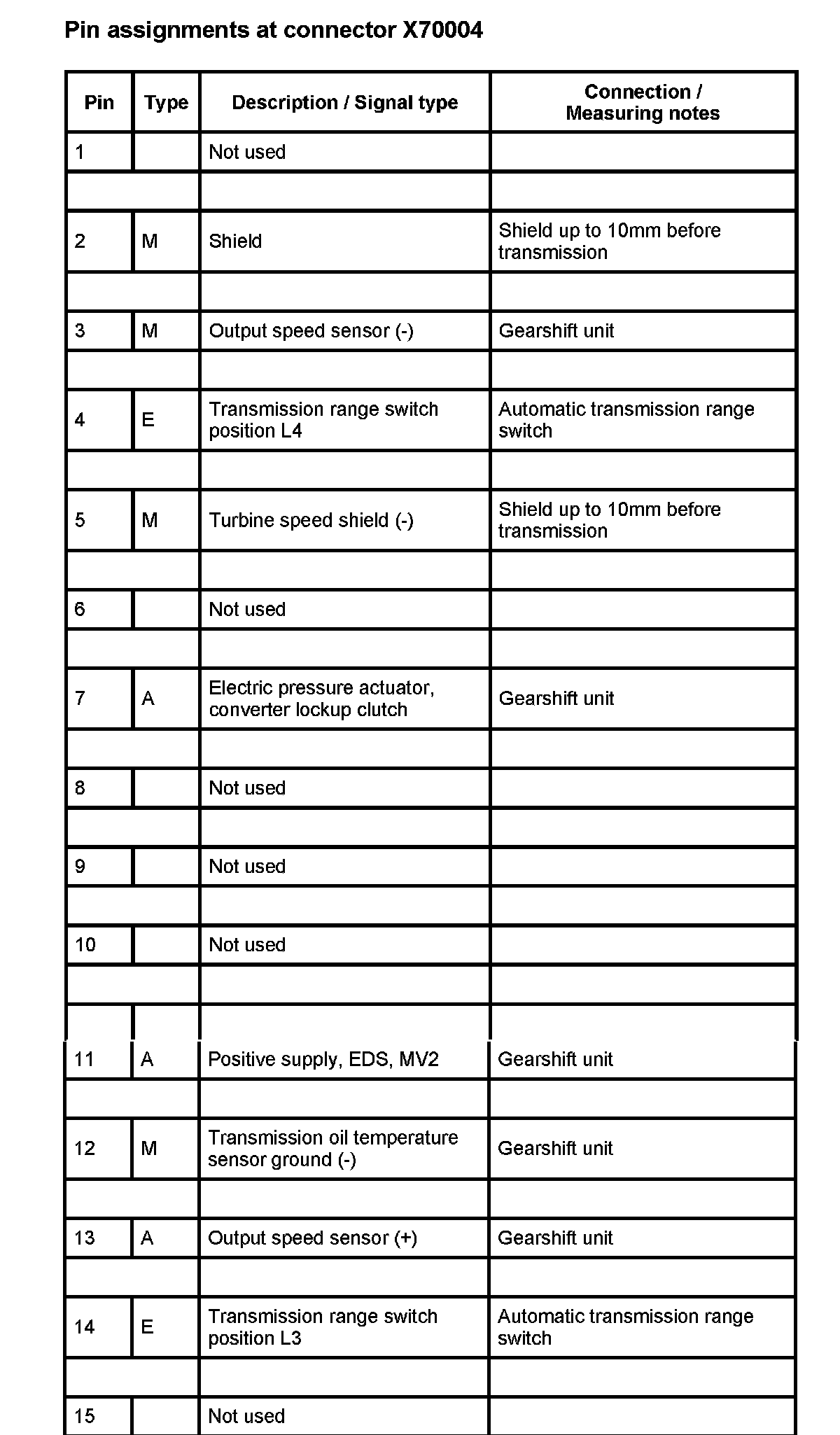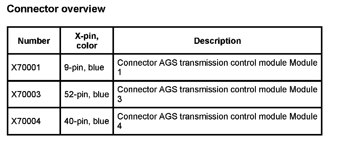 A7000 AGS Trans. CTRL. Module (DME MS43 W/ EGS Trans. CTRL. 8.60.4) (Pin Assignments)