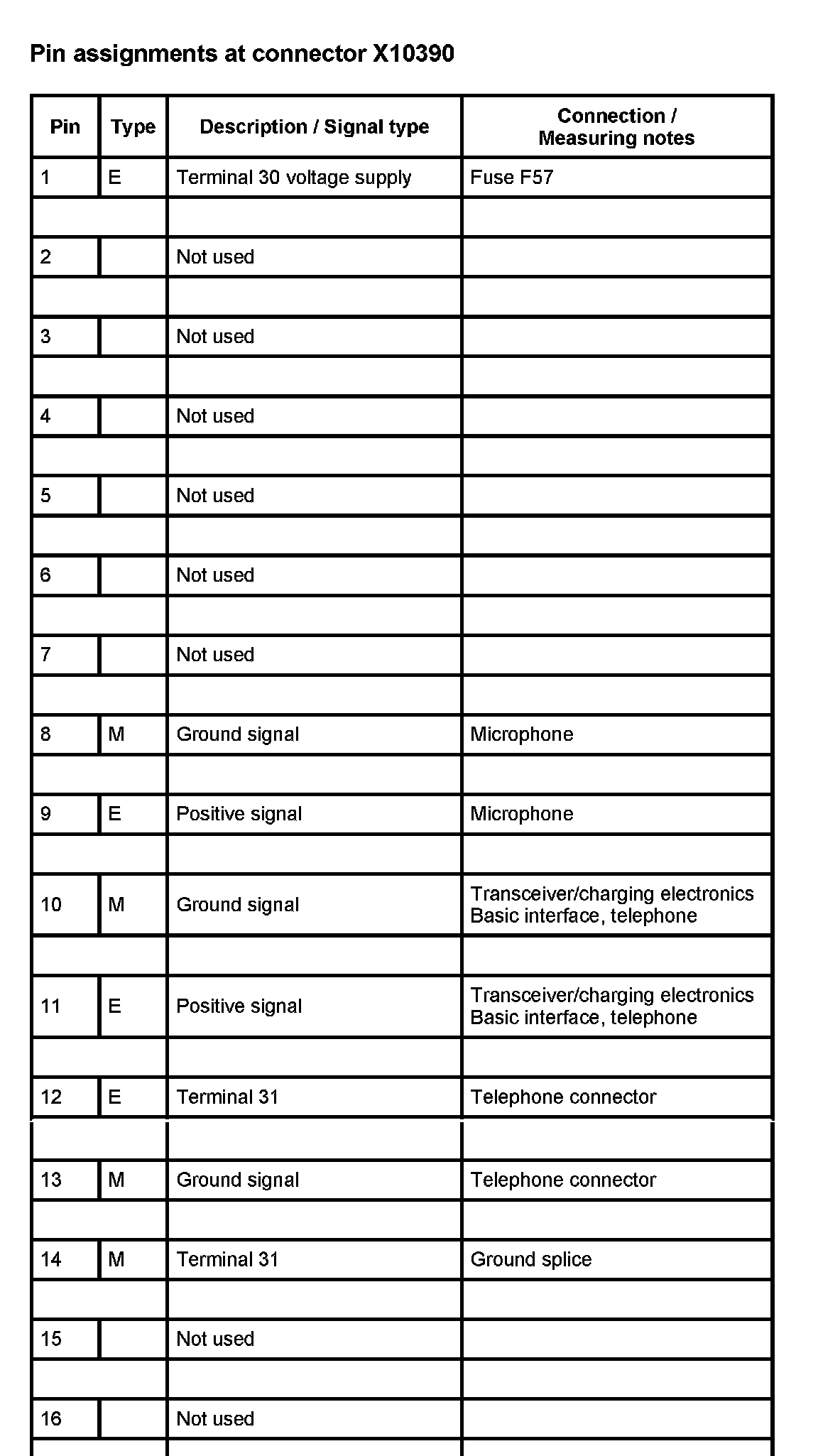 U422 Voice Input (Up to 2000_09) (Pin Assignments)