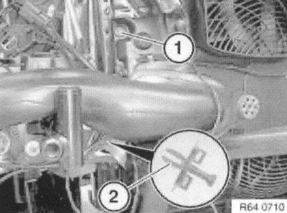 Turn plug housing (2) in direction of arrow and remove from front air duct (3).