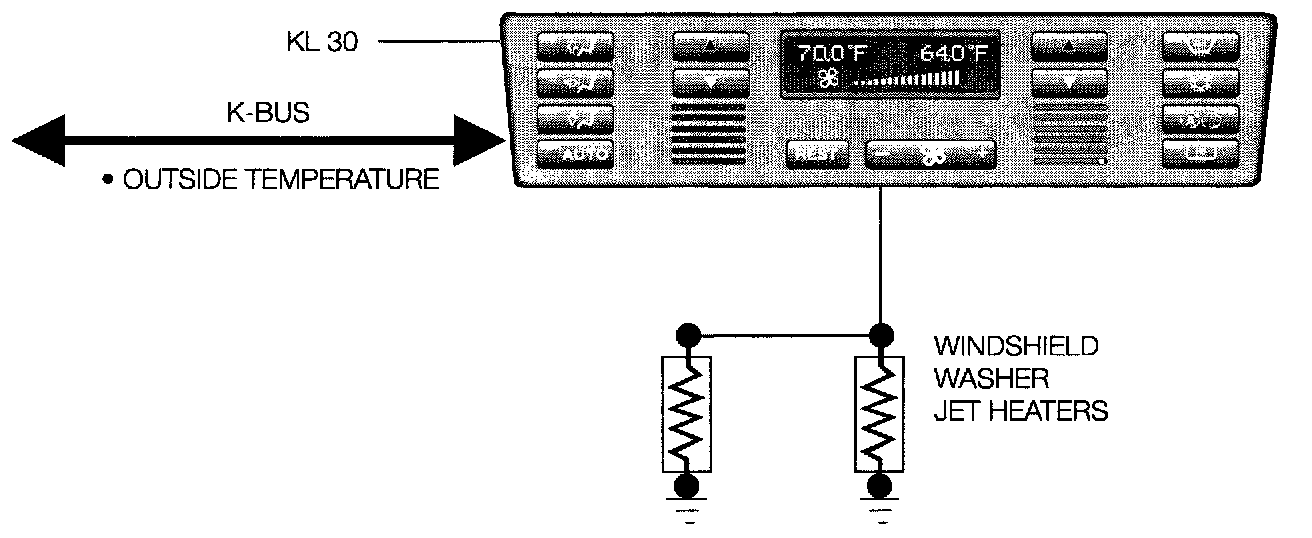 The washer jet heating is switched OFF at temperature > 6°C or it the battery voltage is below 11.4 volts.