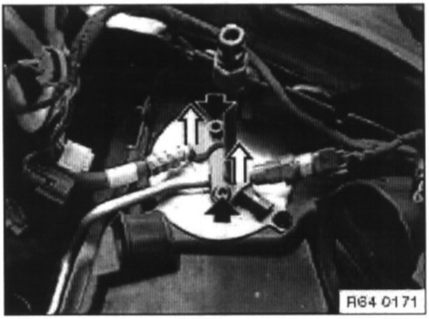 NOTE: Pull pressure and intake pipes upwards and fit with plugs if A/C system remains open for longer than one hour.