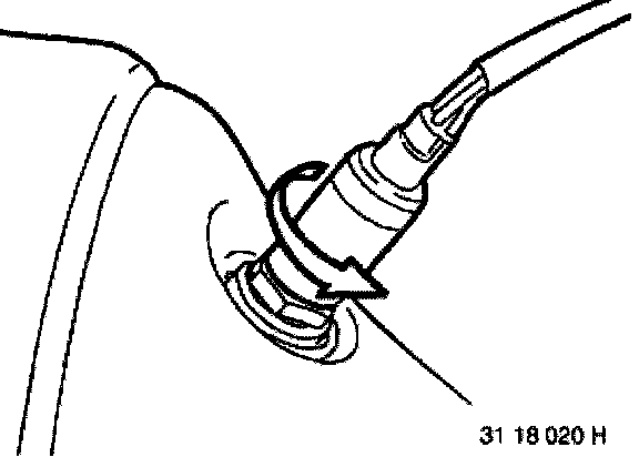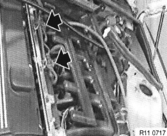 ^ Unclip the cable from the retainer. Disconnect connector. Unclip cable on rear side of engine from cable guide.