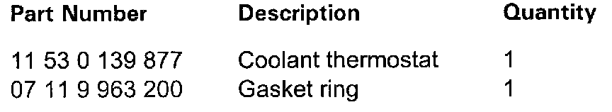 The coolant thermostat and gasket ring may be ordered through all ordering methods. These parts are not restricted, however supply is limited, therefore limit ordering to actual quantities required.