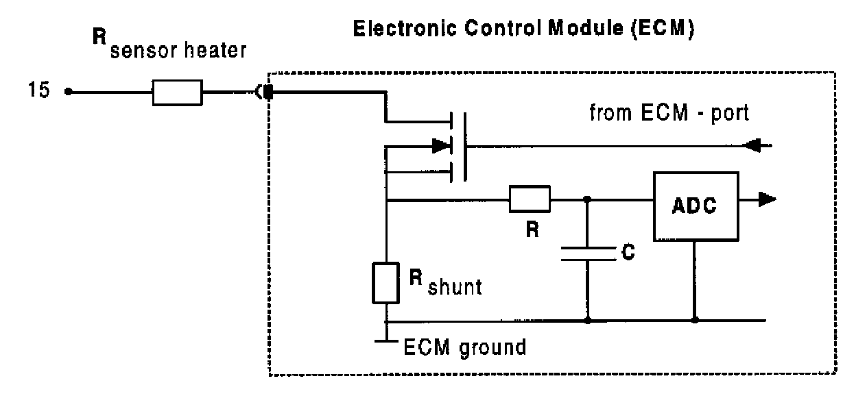 - one shunt for each sensor heater upstream and downstream of catalyst for current measurement