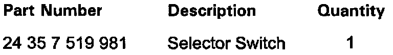 Refer to repair instruction 24 35 600 for replacement of the selector switch.