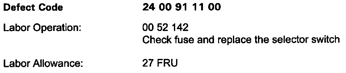 On a customer complaint basis only, check the specified fuse (listed below). If the fuse is not "blown", replace the selector switch.