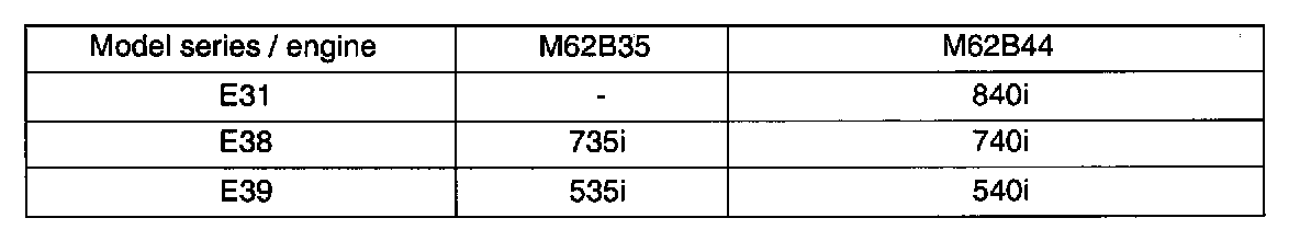 The M62 engine series replaces the M60 engine. The M62 engine is a consistent further development of the BMW V-8 cylinder engine series introduced in 1992. As of 1/96 it will be installed in the series E31, E38 and E39 over a staggered period of time.