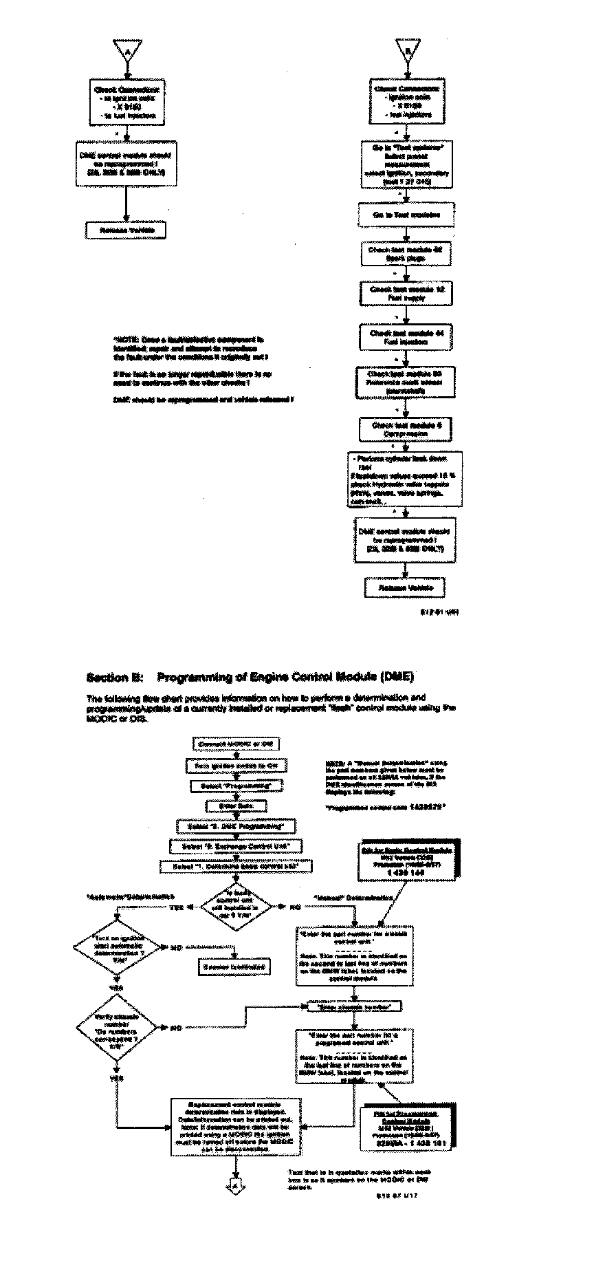 Vehicles produced up to 4/97 that have not been reprogrammed may have one of the following part numbers for a "Programmed control unit" displayed on the [1][2]DME identification screen of the DIS.