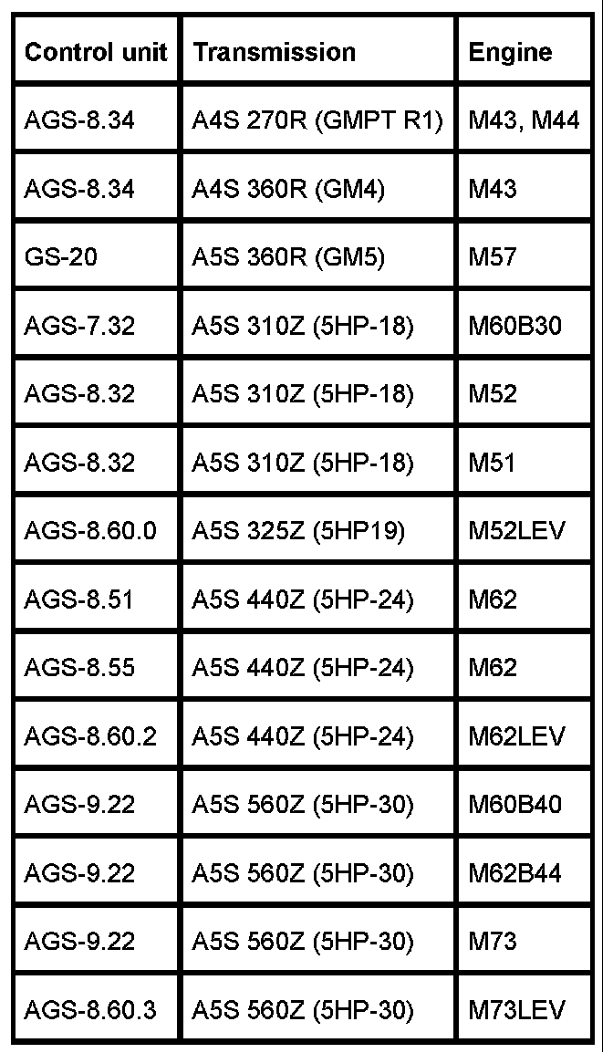 The control units AGS, ASC/DSC (M62 only) and digital motor electronics ([1][2]DME) are currently