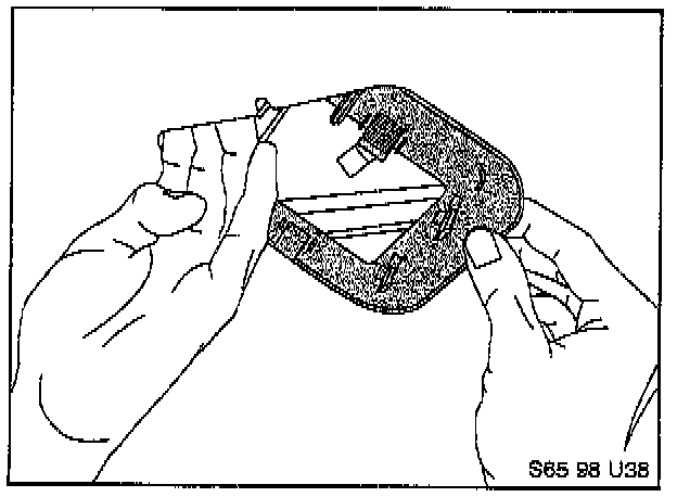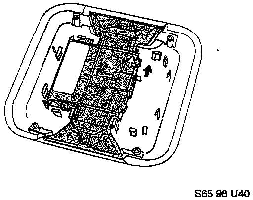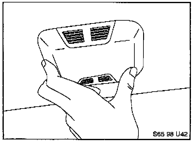 Rotate approximately 90°, and slide the bracket out of the aperture in the roof panel, on the diagonal. Discard the upper mounting bracket.
