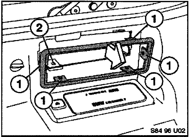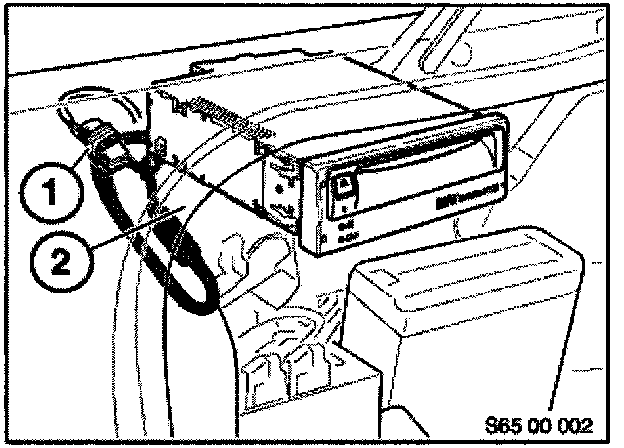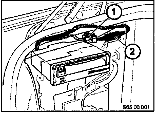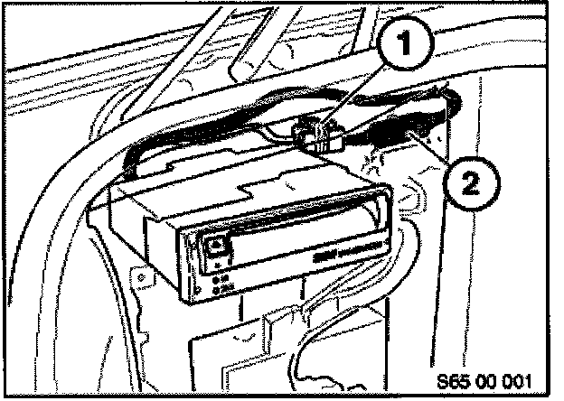 3. Using the special tool (1) (65 5 400), release and remove the navigation computer (for removal instructions, please refer to RA 65 90 510)