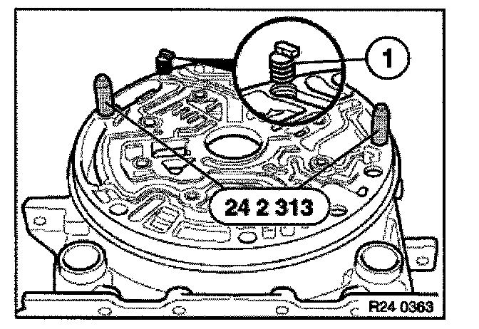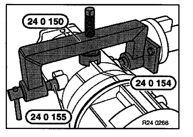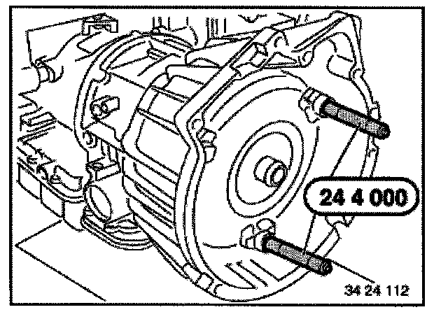 (transmission removed)Secure transmission to assembly frame with special tool 24 0 150 / 154 / 155.