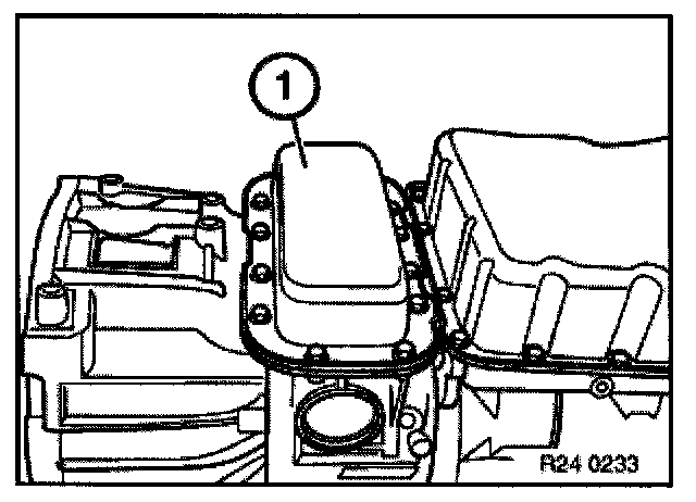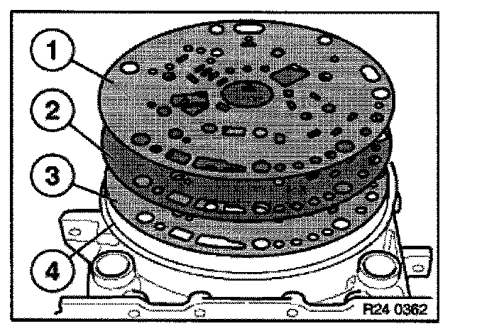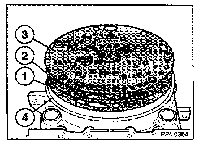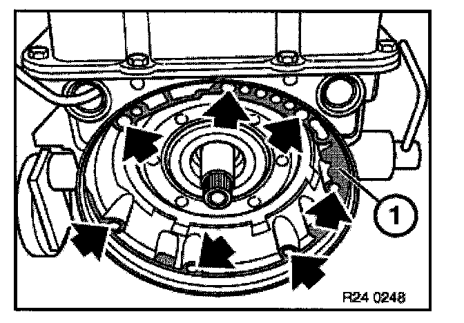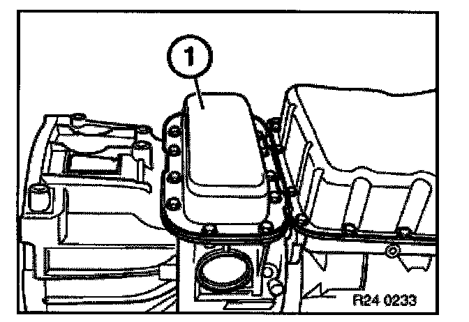 Remove gasket (1), intermediate panel (2) and gasket (3) from intermediate housing (4).