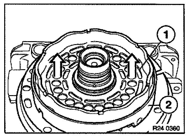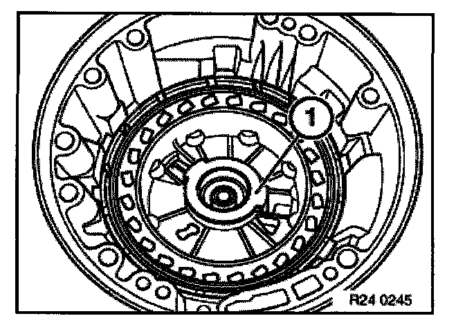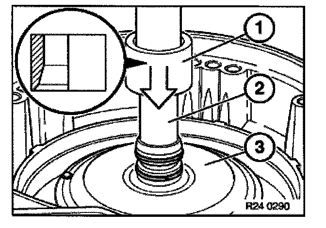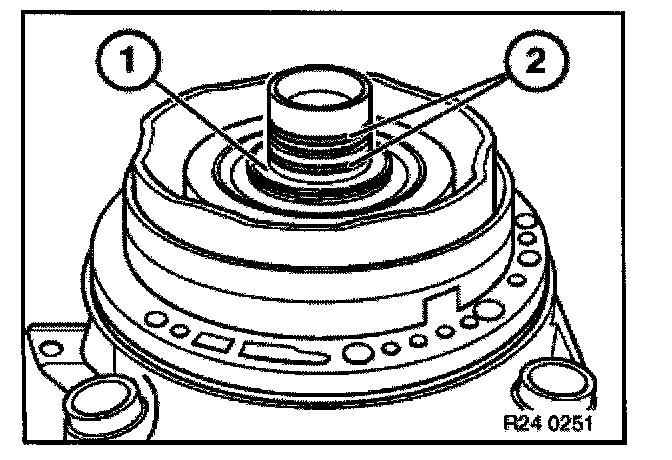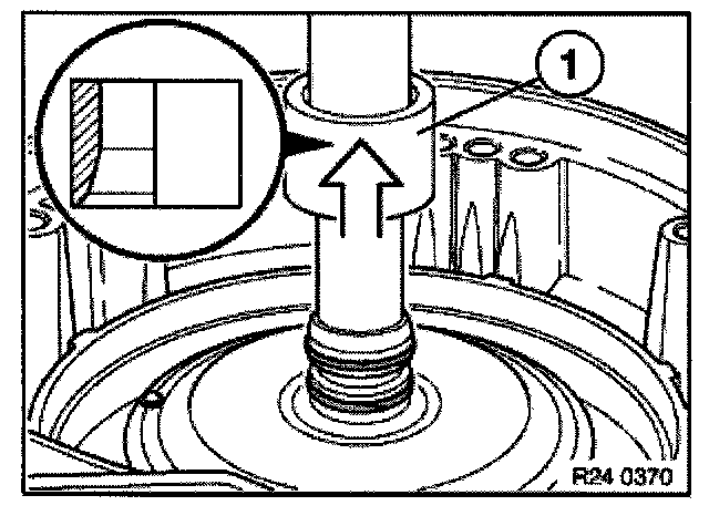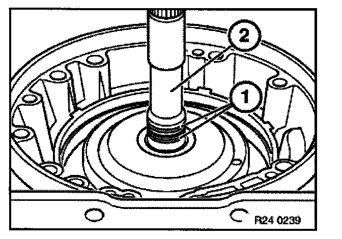 Remove radial seal with special tool 00 5 010 and an appropriate thrust piece (1) from converter bell housing.