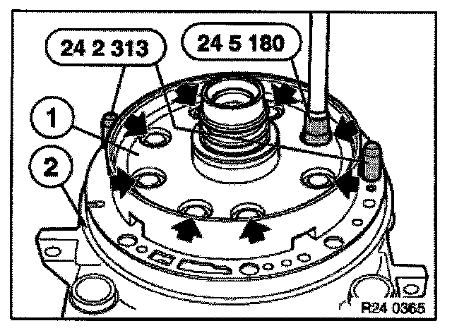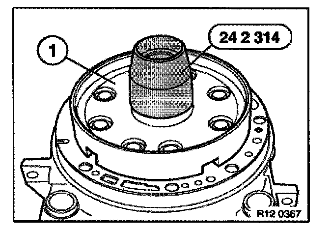 Attach special tool 24 2 314 to intermediate plate (1).