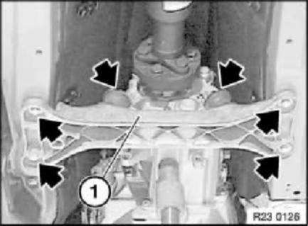 Release screws and remove cross-member (1).