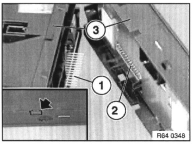 Carefully unclip clips (1) at top and bottom. Remove front plate.