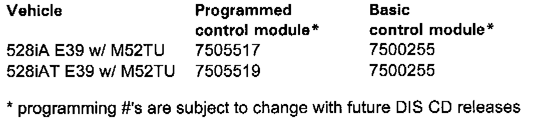1. Before programming, check the DME programmed and basic control module numbers. If the following numbers are displayed, do not program the DME. Contact the Technical Hotline for further instructions.