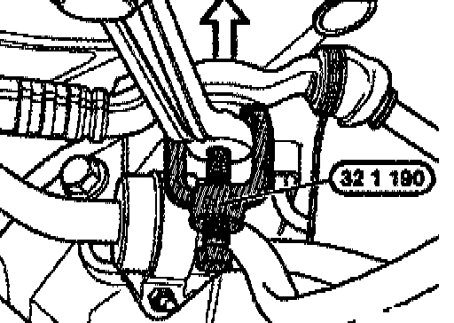 Unscrew left and right nuts. Press left and right track rod off steering knuckle with special tool 31 2 240.