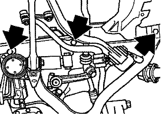 Remove steering gear from front axle support (lines remain connected).