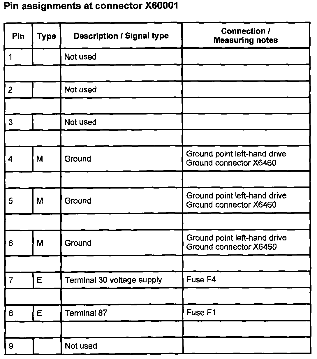 Pin Assignments At Connector X60004 (11-26):