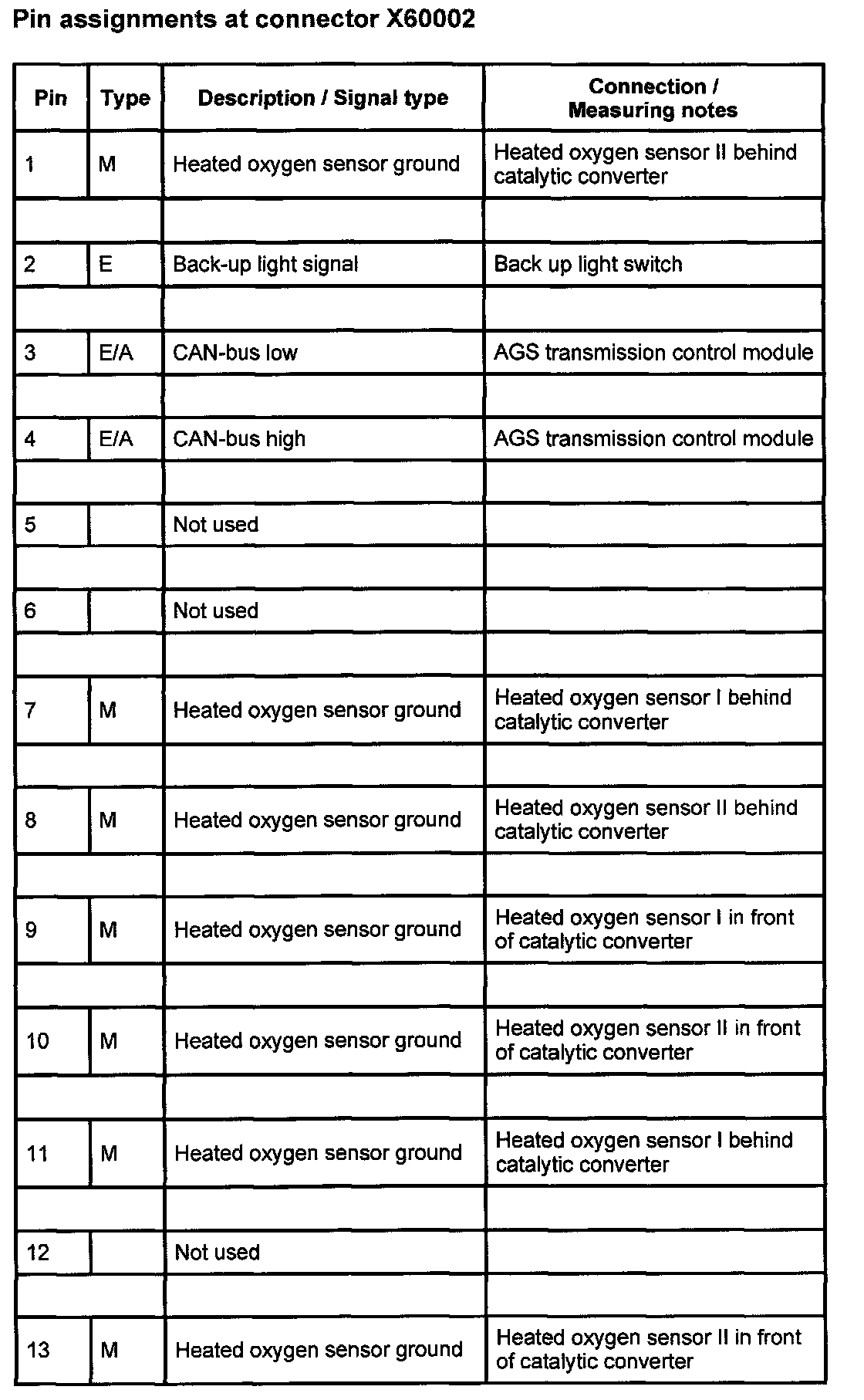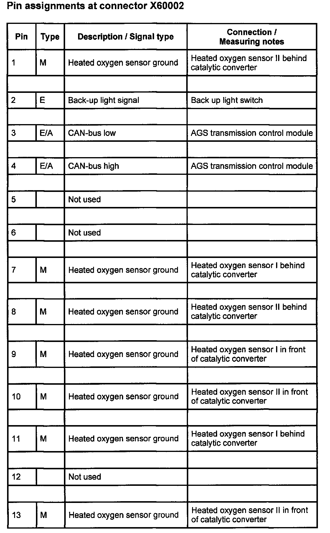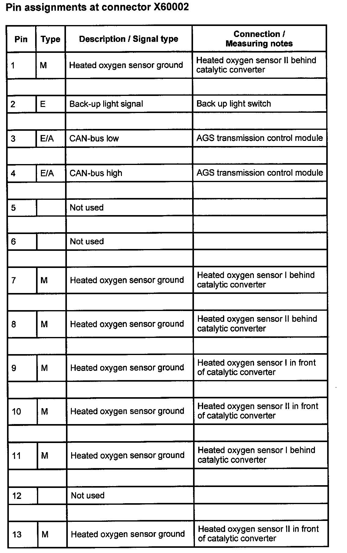 Pin Assignments At Connector X60002 (1-13):