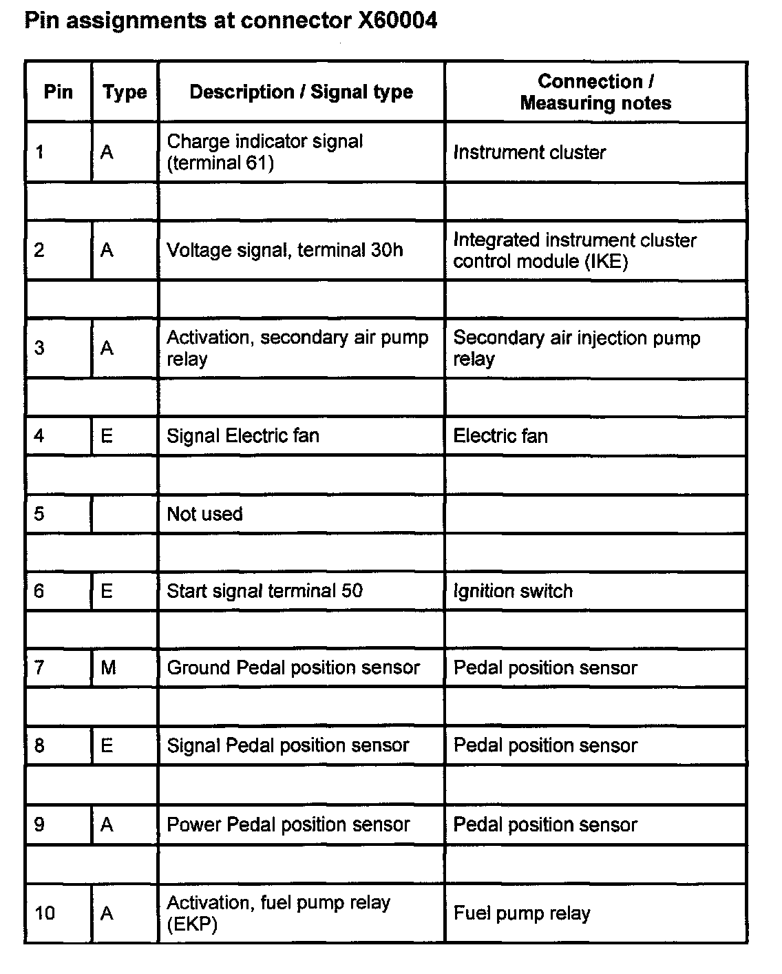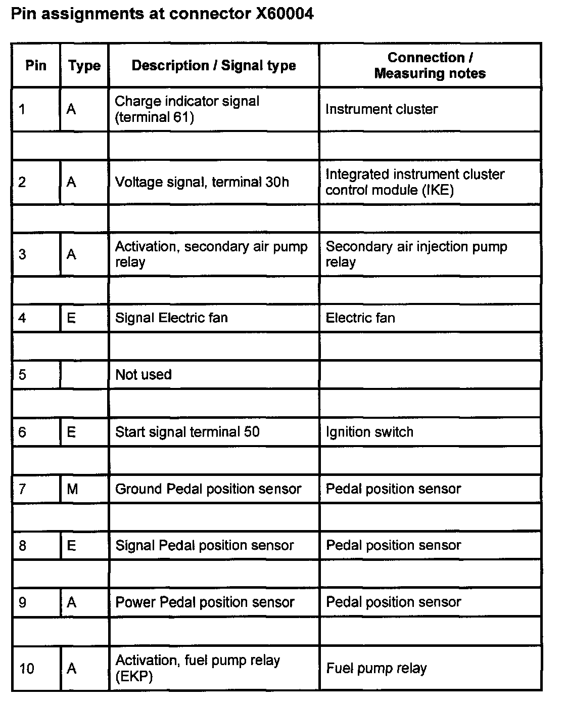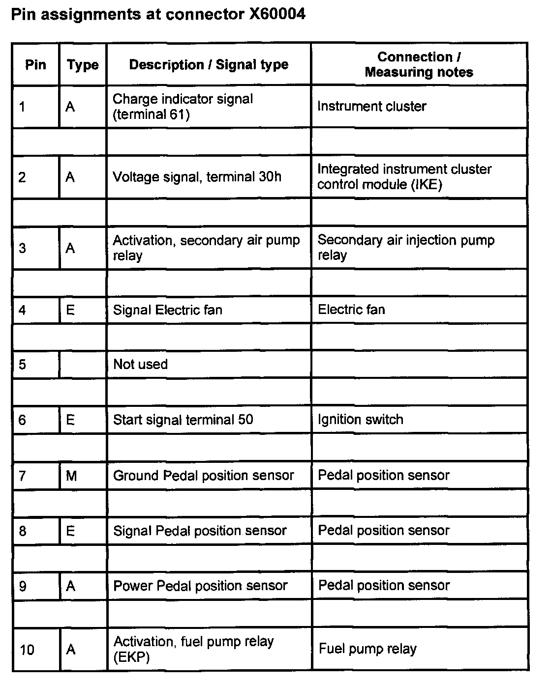 Pin Assignments At Connector X60004 (1-10):