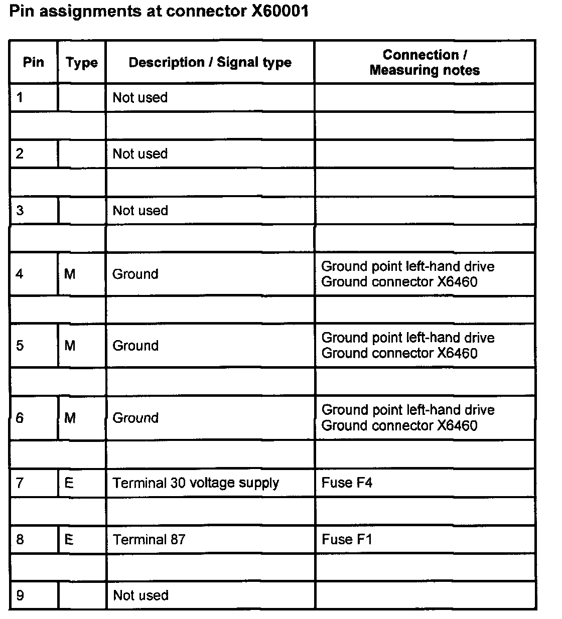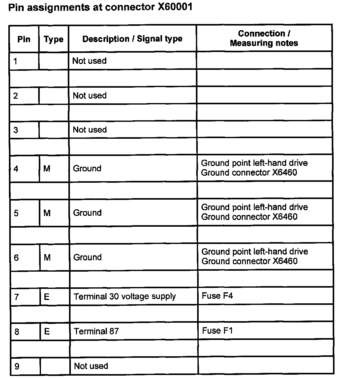 Pin Assignments At Connector X60001: