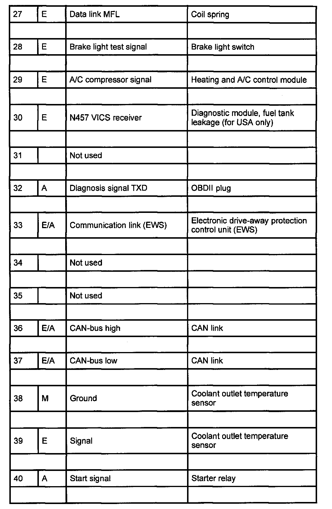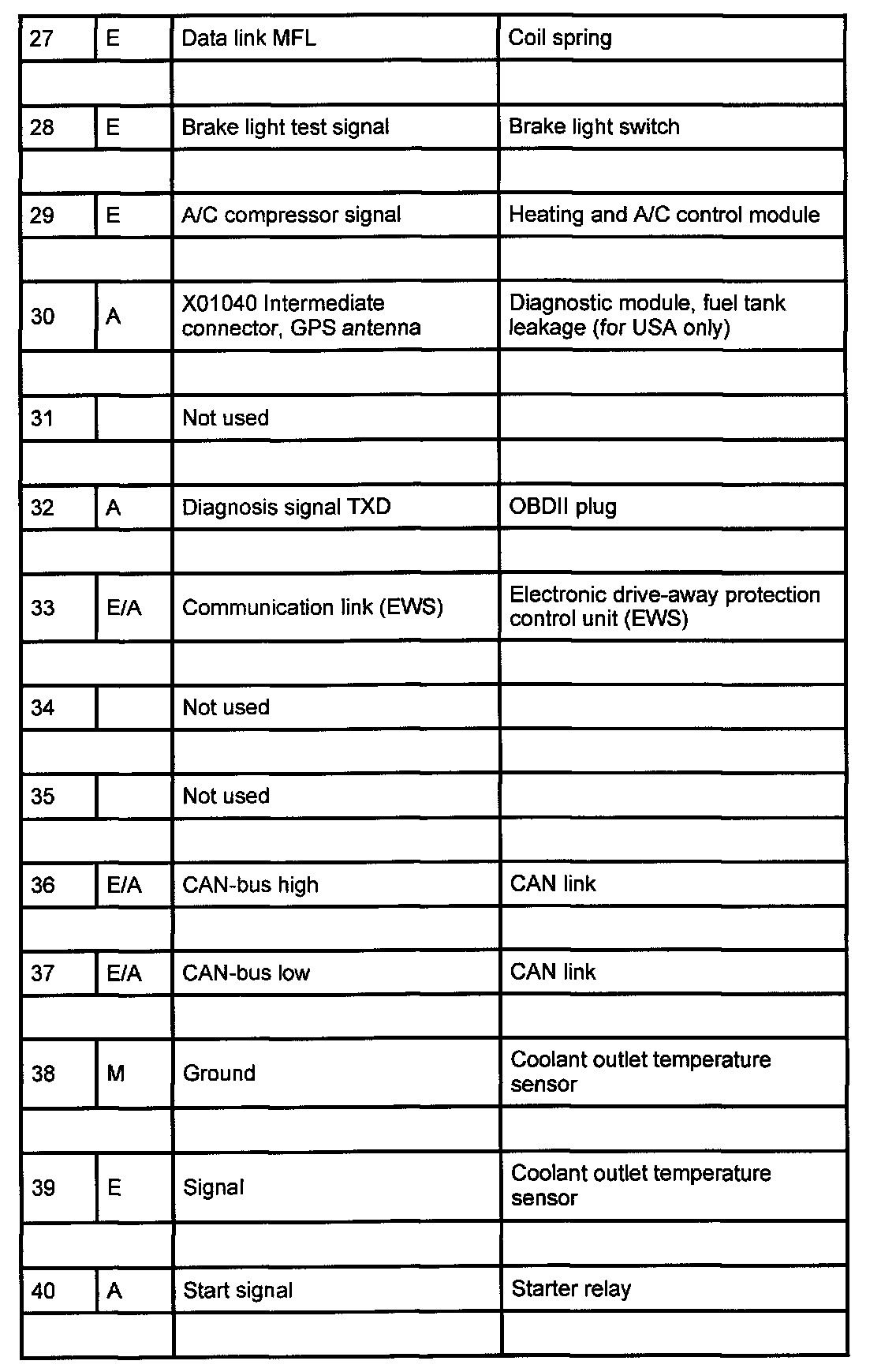 Pin Assignments At Connector X60004 (27-40):