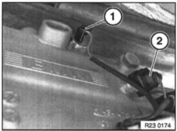Disconnect plug connection (1) for left and right pulse generators for exhaust camshaft.