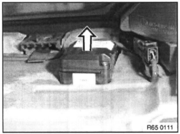 Open flap in rear left side panel. Remove rear left wheel arch trim. Disconnect plug-in connection.